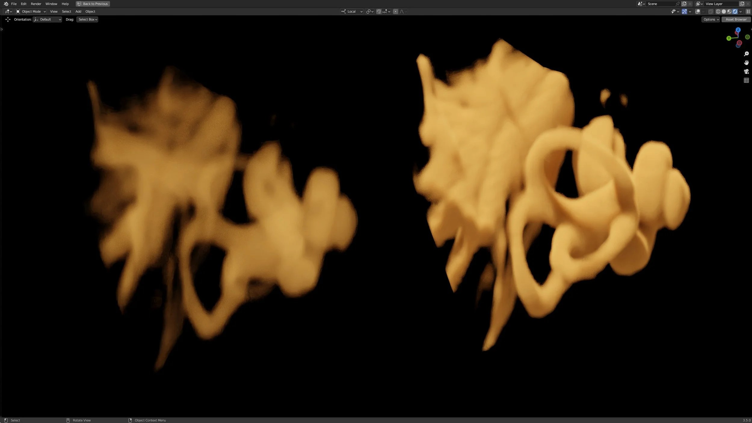 Using the same principle, it is also possible to voxelize the volumes into physical meshes by opting to use the geometry nodes features in Blender instead of shader nodes. Having creative node systems like this can provide a massive amount of control for the artistic interpretation of the scan data, but may have limited utility for diagnosis, which I’ll talk a bit more about in the ‘Limitations of Volumes’ section.